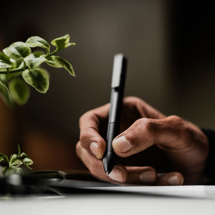 At the core of its design is a reimagined writing mechanism we call the mid-click. Instead of placing the clicker at the end of the pen, we integrated it directly into the body. This creates an extended cap and shifts weight toward the back of the pen, delivering improved balance and control. The result is a writing experience that feels deliberate, natural, and fluid - an extension of your hand rather than just another object.