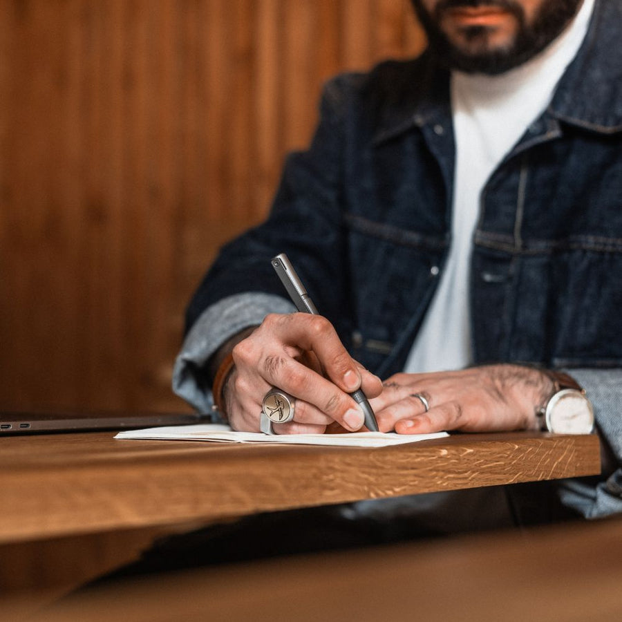 Constructed from solid titanium and built with an all-metal mechanical design, the Bard uses no adhesives or glue. It’s perfectly weighted, precisely balanced, and engineered to endure daily use for decades. Whether you’re taking notes, sketching, journaling, or navigating your next adventure, the Bard is designed to perform consistently - and age beautifully over time.