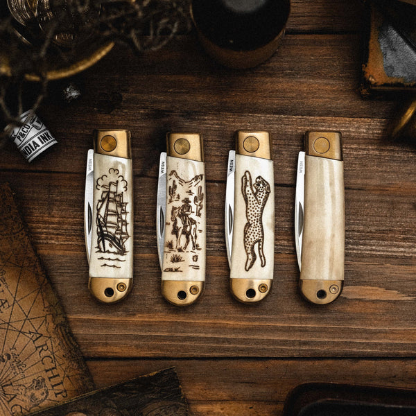 - Ethically sourced Ox Bone scale handle inlays