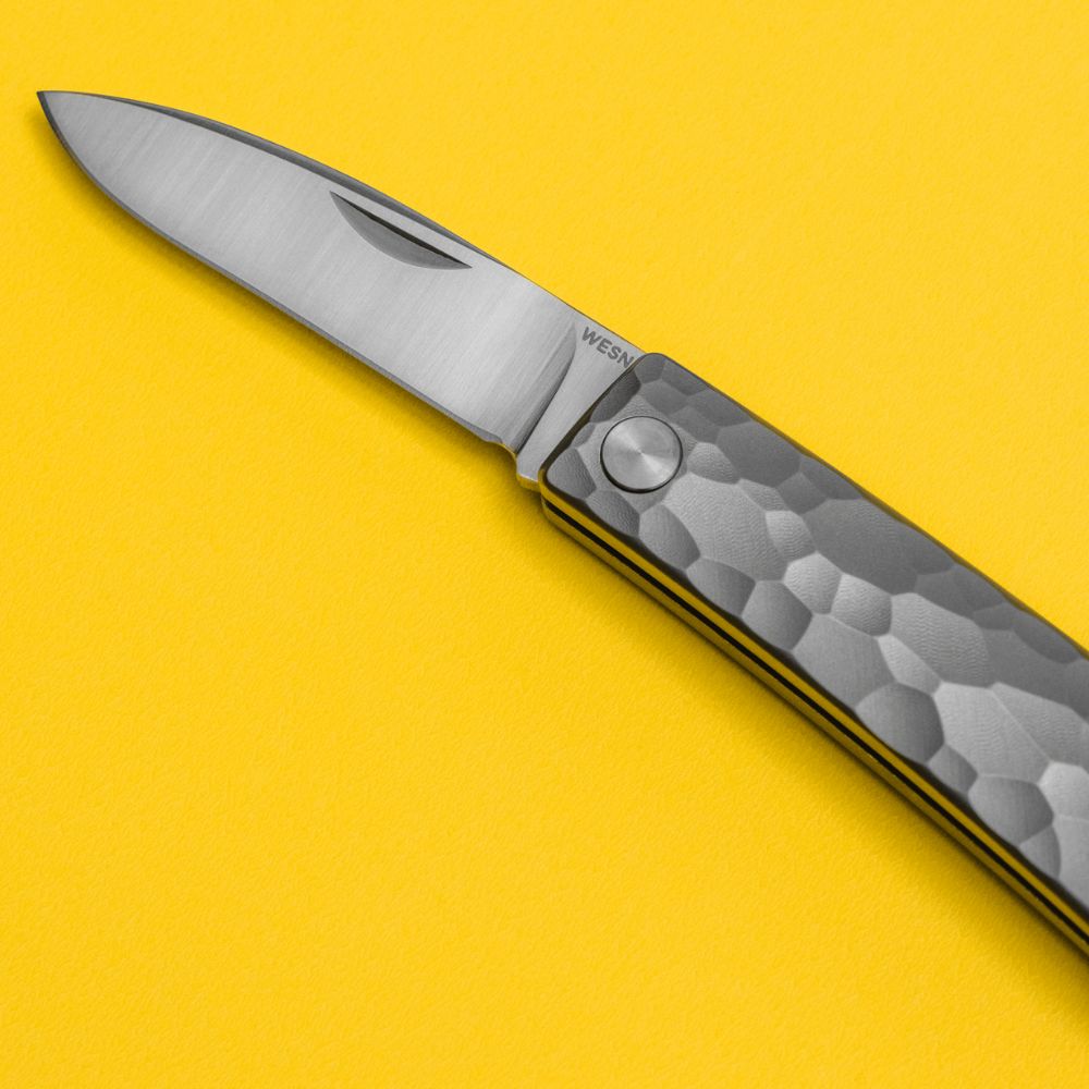 Compact and understated, it embodies the quiet confidence of a tool made to simply work - and work beautifully. With classic slip-joint mechanics, a dual-sided textured Grade 5 Titanium handle, and a slim M390 blade - the Henry is built for the small, essential tasks of daily life.