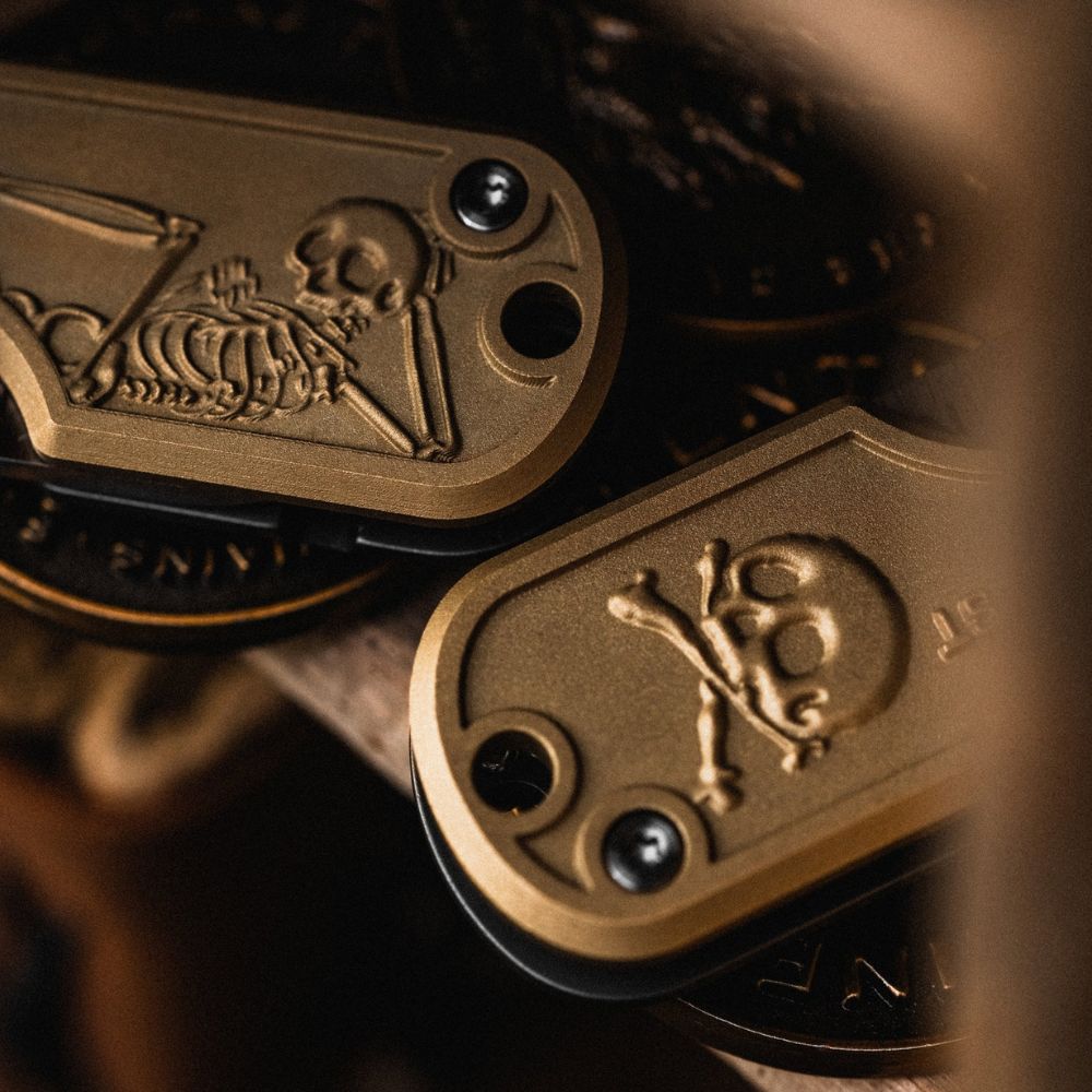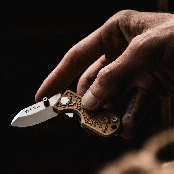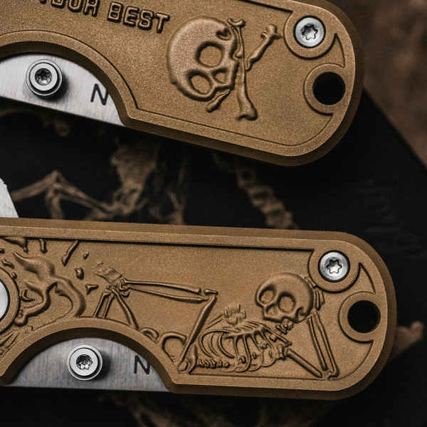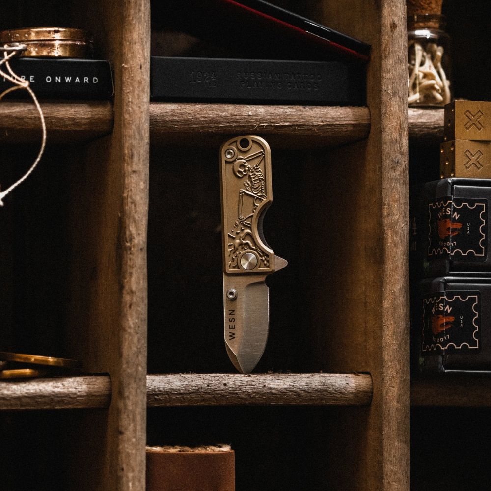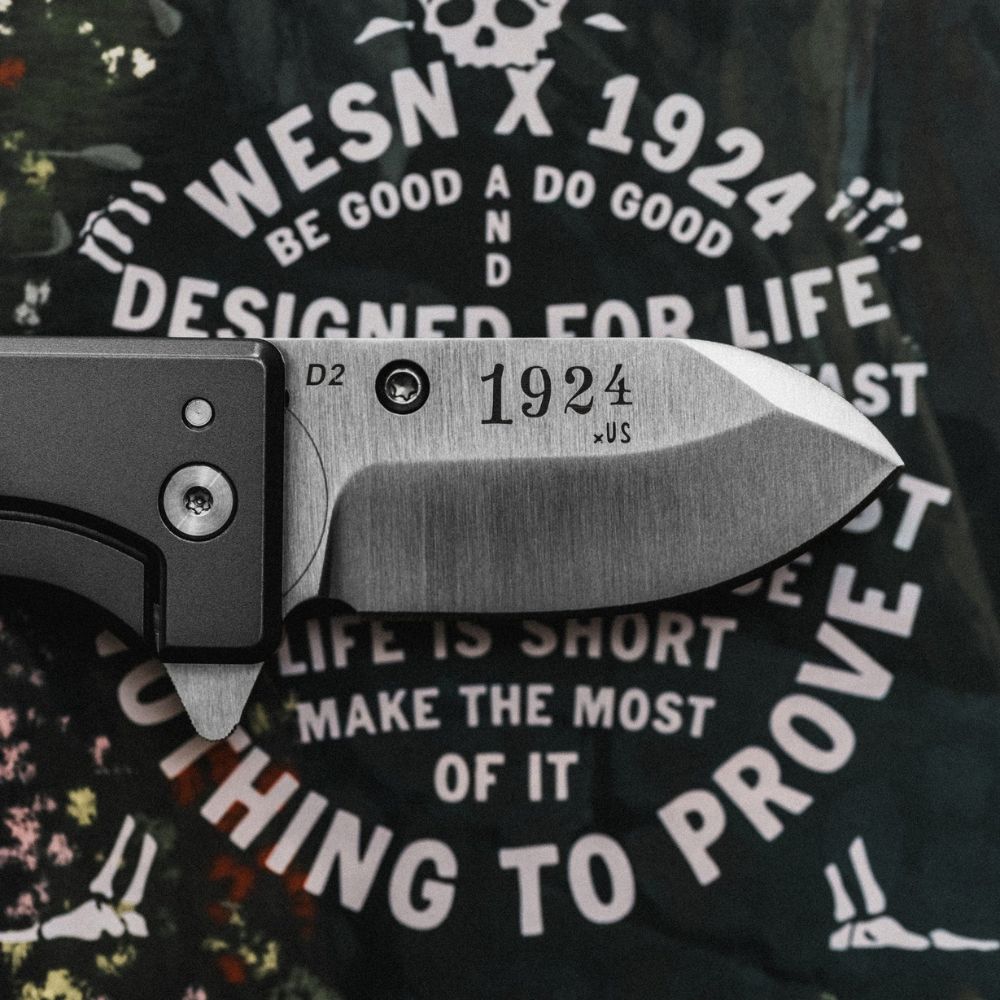 Merging 1924’s hand-drawn aesthetic with WESN’s precision in knife craft, these blades are made to outlast all of us. One showcases 1924’s iconic Mr. Skelly character, the other carries a “Do Your Best” engraving - both built with purpose; tools to tell stories for years to come.