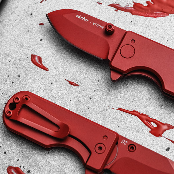 The WESN x Ekster Microblade - an entirely red pocket knife to its core. Bold, bright, entirely unique.