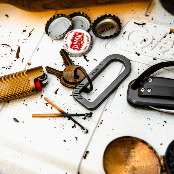 Our Carabiner (or CB for short) is crafted with the classic WESN minimalist aesthetic in mind. Milled from just a single piece of high strength titanium, the CB is sleek yet boasts extreme utility. Carry what you need with simplicity, strength and style.
