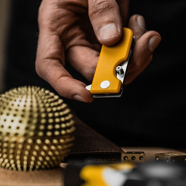 Our flagship knife has been turning heads since 2017. In design, we set out to create a blade that had the practicality and versatility of a full sized pocket knife — but at a fraction of the weight, and just the size of a house key. Besides that, it needed to be made of premium materials, and able to be carried with you for a lifetime.