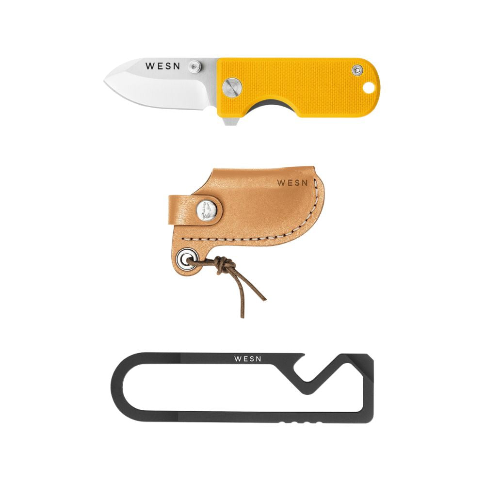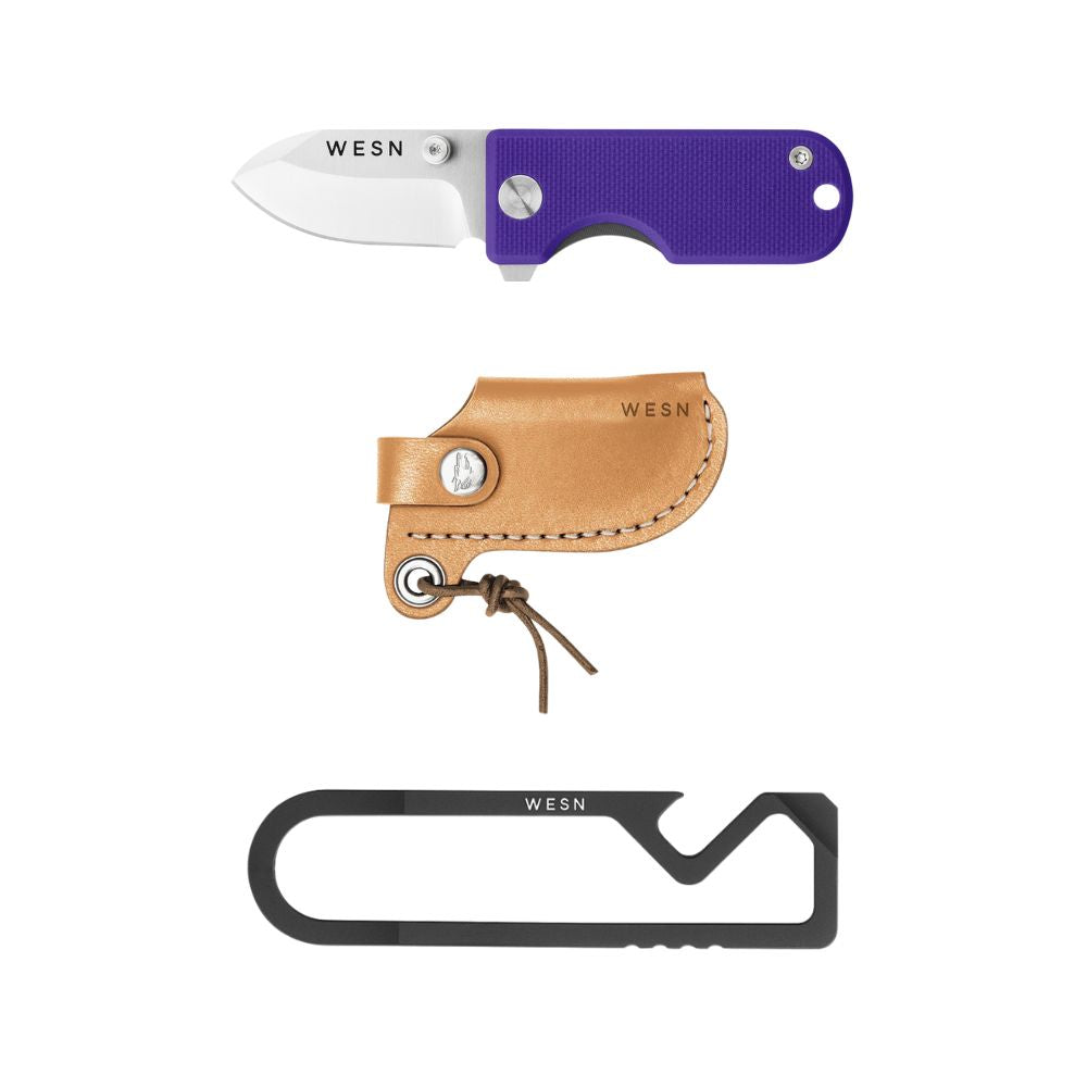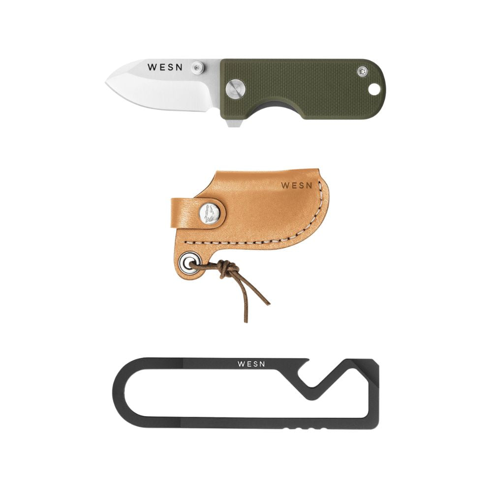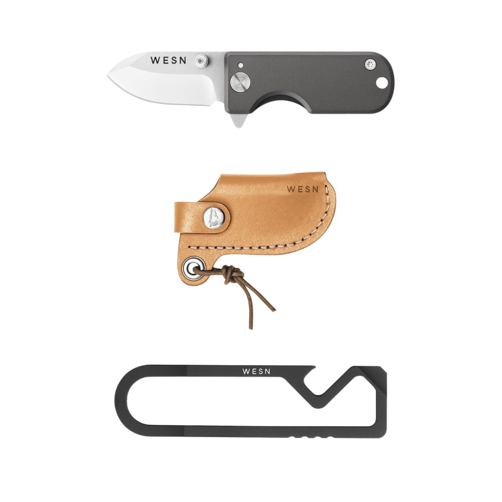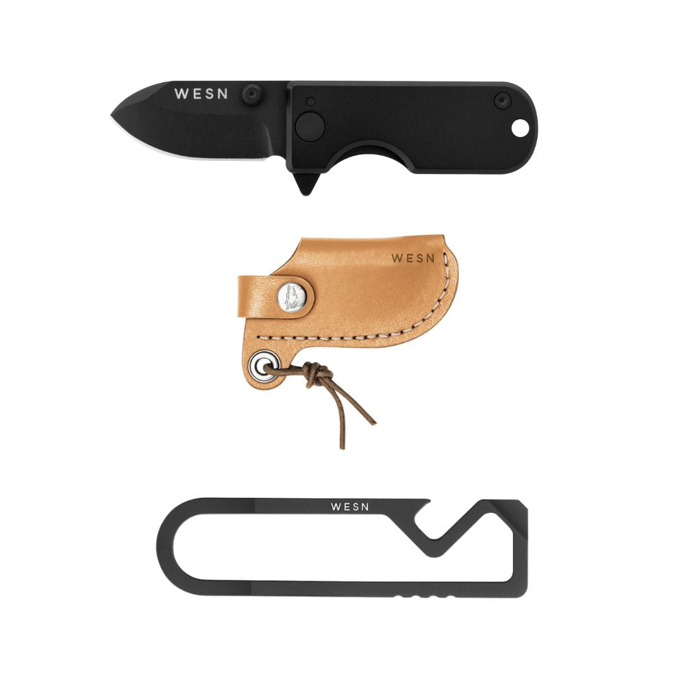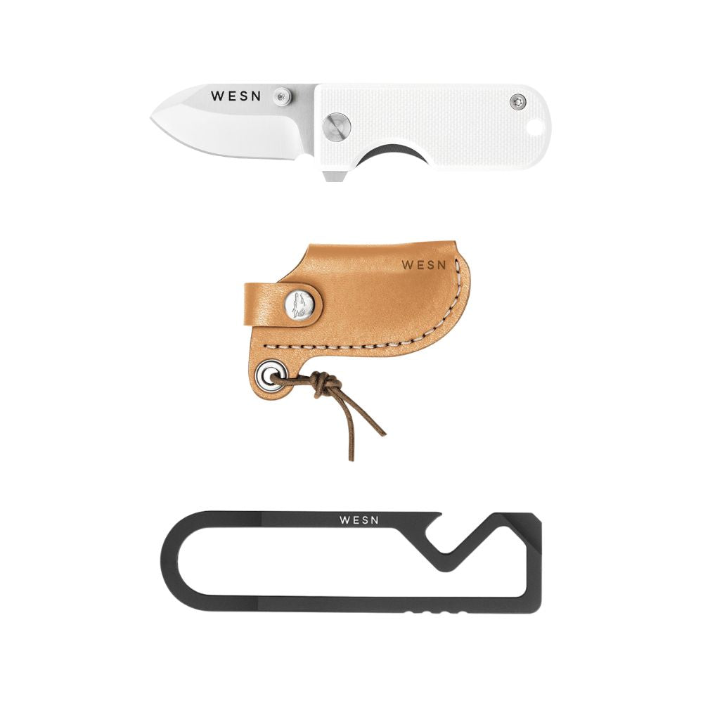 The Starter Kit Bundle is a simple, no-frills way to get more gear for less - and the ideal introduction to WESN. Inside you’ll find three of our best sellers: a Microblade of your choosing, a natural leather sheath, and our MT keychain multi-tool. Built to be used every day. Backed for life.