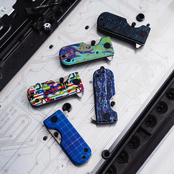 The Neon Grid Microblade is a retro take on our best-selling everyday carry knife — the Microblade.